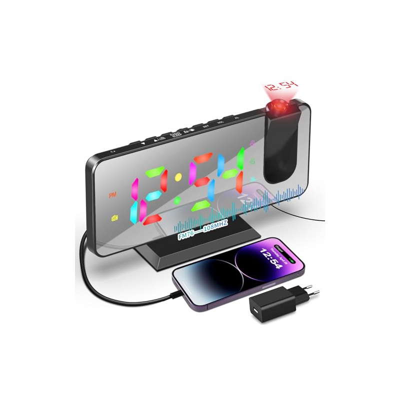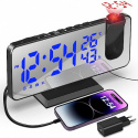 Reveil Projecteur Plafond - La nuit, le radio réveil projection plafond projette une image HD rotative à 180 degrés sur le mur ou le plafond. Vous pouvez vous réveiller au milieu de la nuit et voir l'heure avec les yeux ouverts. Même pendant la journée, l'heure est projetée clairement en rouge sur le plafond